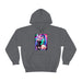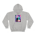 This unisex heavy blend hooded sweatshirt is relaxation itself. Made with a thick blend of cotton and polyester, it feels plush, soft and warm, a perfect choice for any cold day. In the front, the spacious kangaroo pocket adds daily practicality while the hood's drawstring is the same color as the base sweater for extra style points.